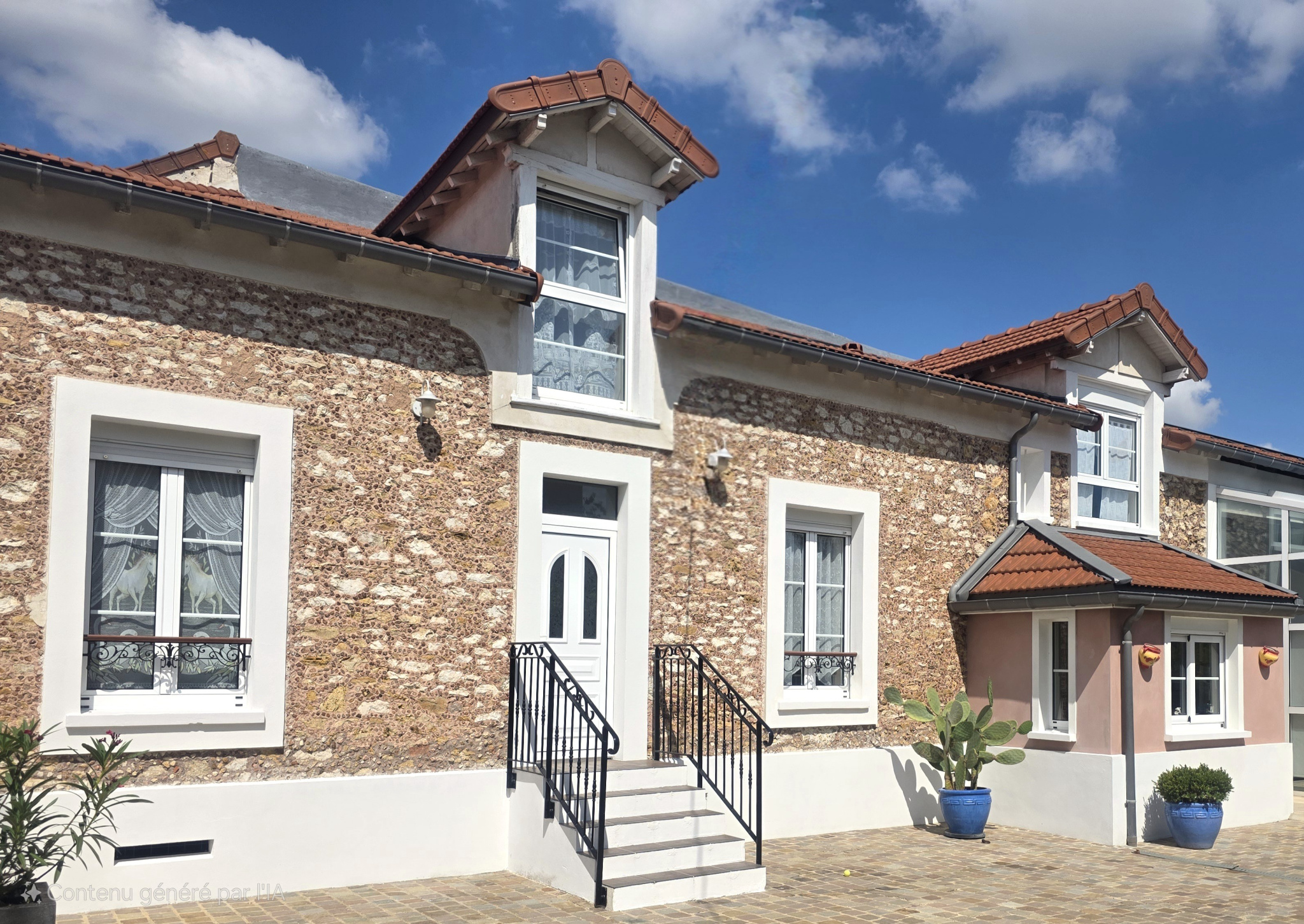 Les +++ Chauffage au sol et eau chaude par chaudière à condensation Frisquet. Fenêtres avec volets roulants électriques, huisseries en aluminium laqué blanc. Ventilation hygroréglable. Portail électrique et alarme dans les deux logements. Toiture entièrement neuve (Juillet 2024) avec garantie décennale.