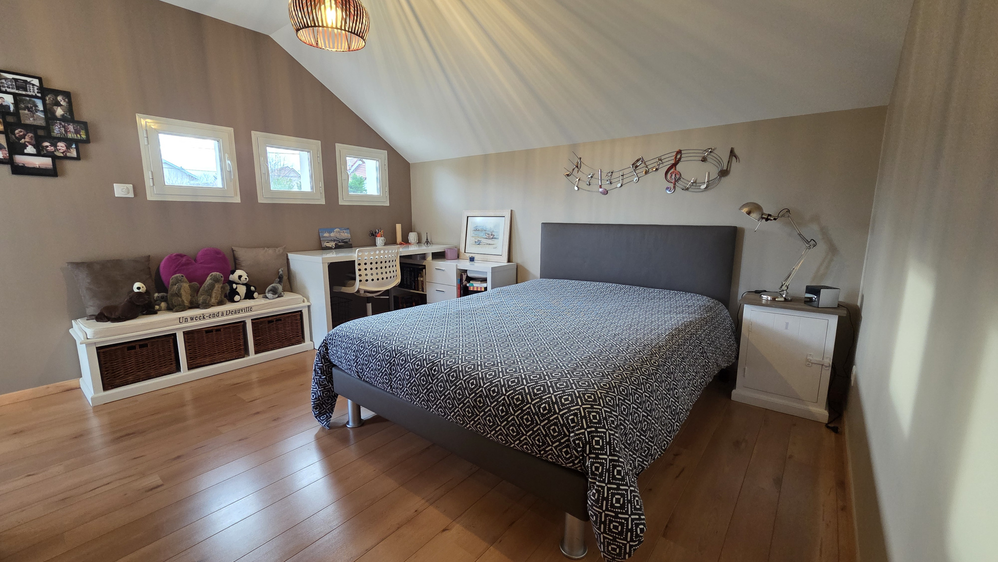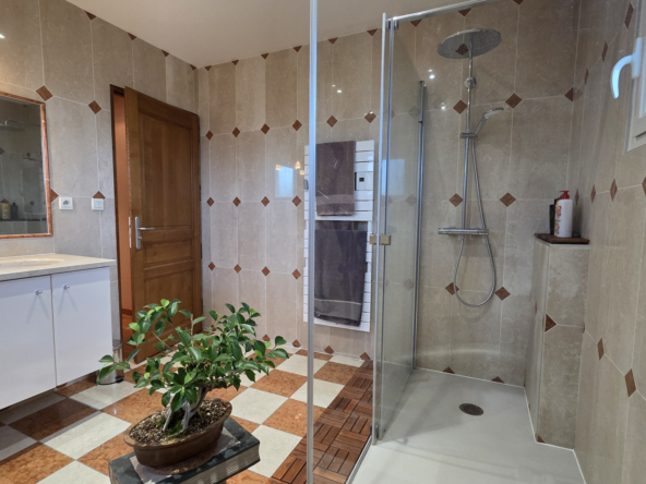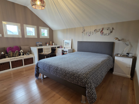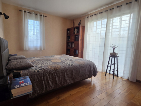 La maison propose 5 chambres, dont une suite parentale de plain pied avec dressing et salle d’eau privative, ainsi que 2 autres salles de