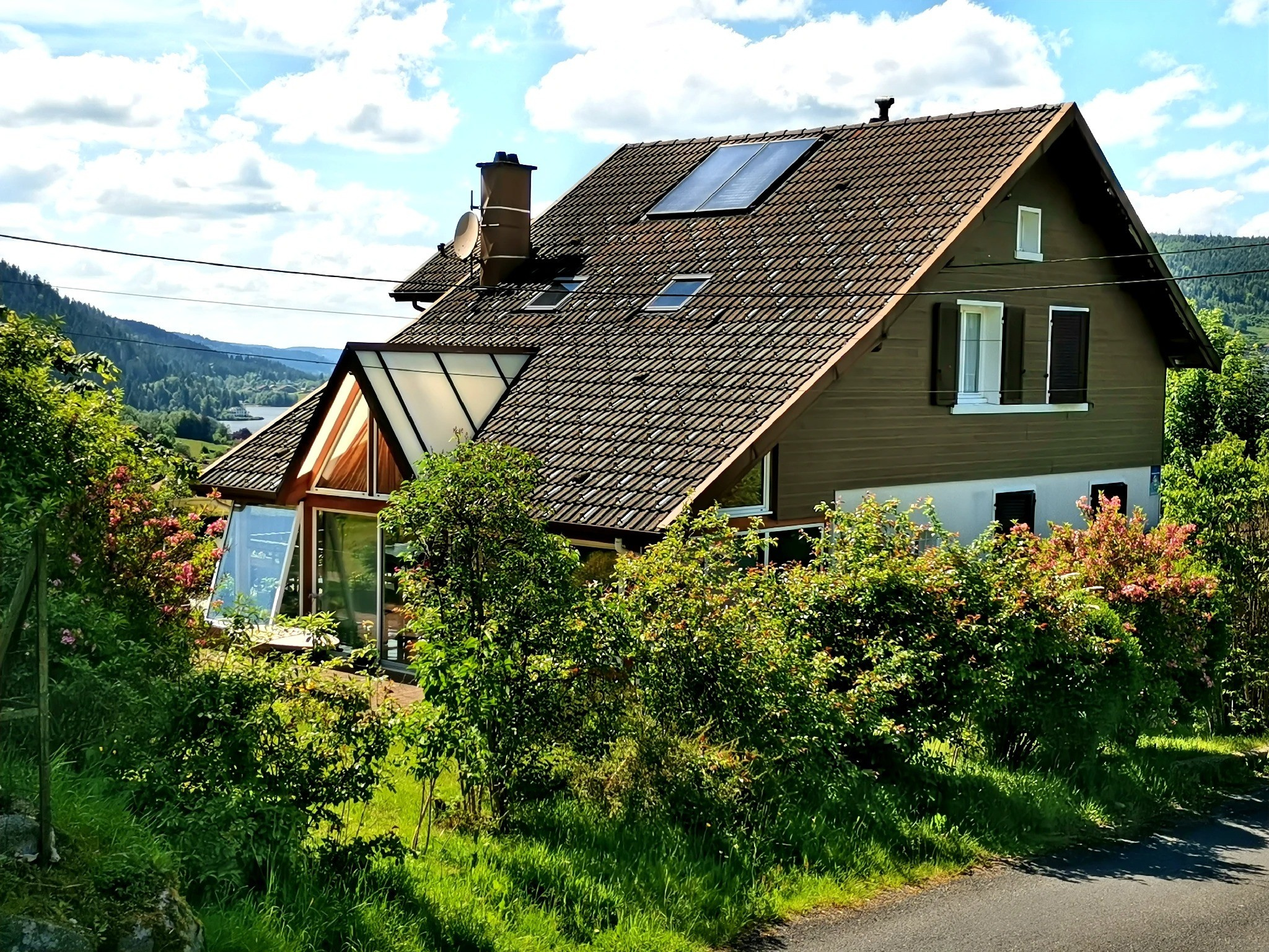 Véranda panoramique, terrasse avec spa, extérieurs pensés pour le bien-être en toutes saisons. Terrain d’environ 1 000 m2, vues dégagées, exposition optimale.