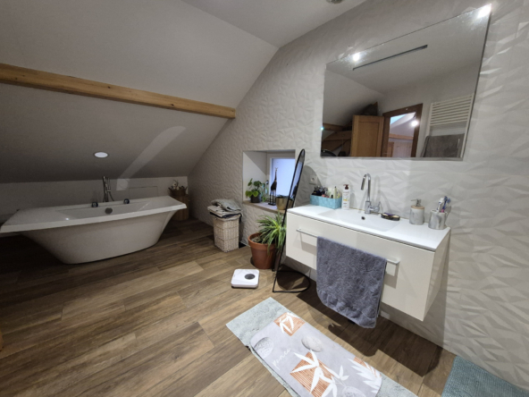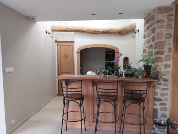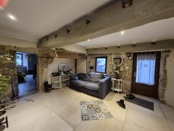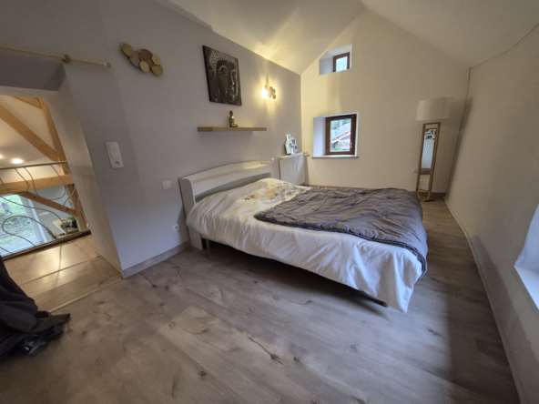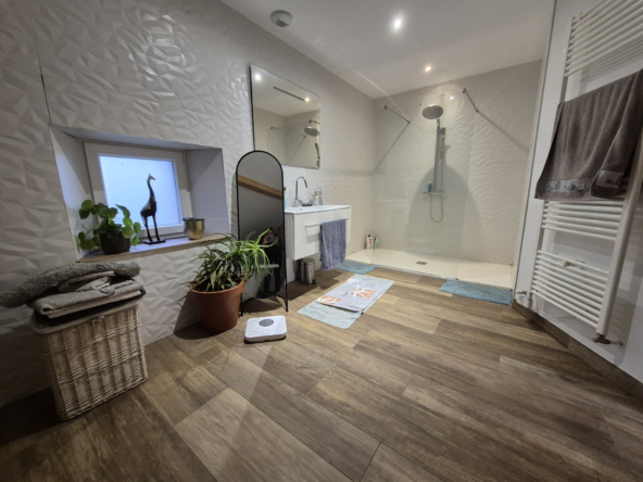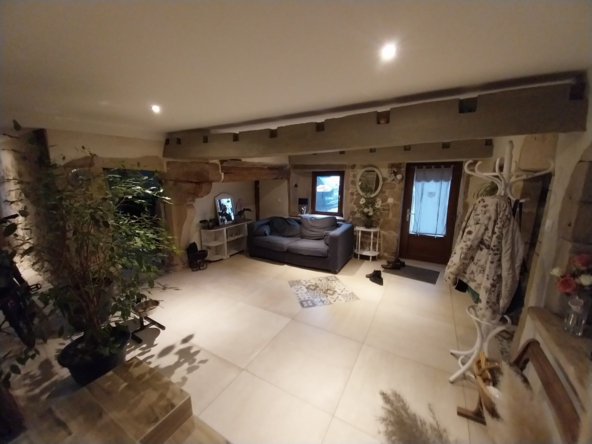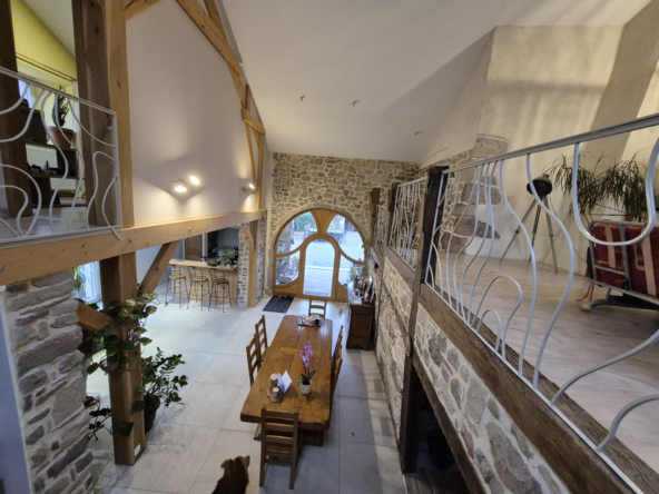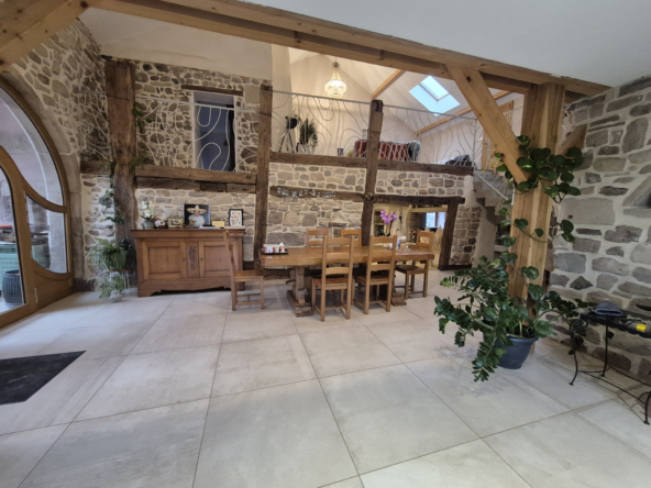 Au cœur d’un charmant village calme, à moins de 10 minutes des commerces, découvrez cette superbe ferme rénovée en 2018, alliant le charme de l’ancien et le confort moderne. Offrant environ 190 m2 habitables, cette propriété s’étend sur un vaste terrain de 5 804 m2, constructible avec permis de construire et un mobil-home habitable de 40 m2. L’intérieur, entièrement rénové, met en valeur de magnifiques pierres apparentes et des matériaux de qualité. Au rez-de-chaussée, profitez d’un grand séjour lumineux ouvert sur une cuisine en chêne massif, d’une chambre, d’une buanderie et d’une pièce pouvant faire office de grand bureau, de salle de jeux ou d’une quatrième chambre. Pour les amateurs d’authenticité, une ancienne gazinière à bois a également été installée, apportant un charme supplémentaire à la cuisine et permettant de profiter de la chaleur douce du bois. À l’étage, un salon, deux chambres, une salle de bain complètent l’espace nuit. Les portes massives et le double vitrage assurent confort et isolation, tandis qu’une grande porte arrondie dans la salle à manger rappelle le style authentique des anciennes granges. Le bien est équipé d’un chauffage mixte : pompe à chaleur aérothermique et chaudière fioul avec plancher chauffant au rez de chaussé et radiateurs à l’étage, complétés par 24 panneaux solaires installés en 2022 (autoconsommation + revente). L’assainissement est géré par une micro-station d’épuration. À l’extérieur, la propriété est idéale pour les amoureux des animaux : une partie du terrain est clôturée pour les chiens, un bâtiment peut accueillir deux chevaux, et un espace est prévu pour les poules. Le cadre paisible et la proximité des commodités font de cette maison un lieu de vie rare et recherché. Cette propriété conviendra parfaitement en tant que maison principale familiale ou en résidence secondaire, offrant un cadre de vie paisible et de nombreuses possibilités d’aménagement selon vos projets.